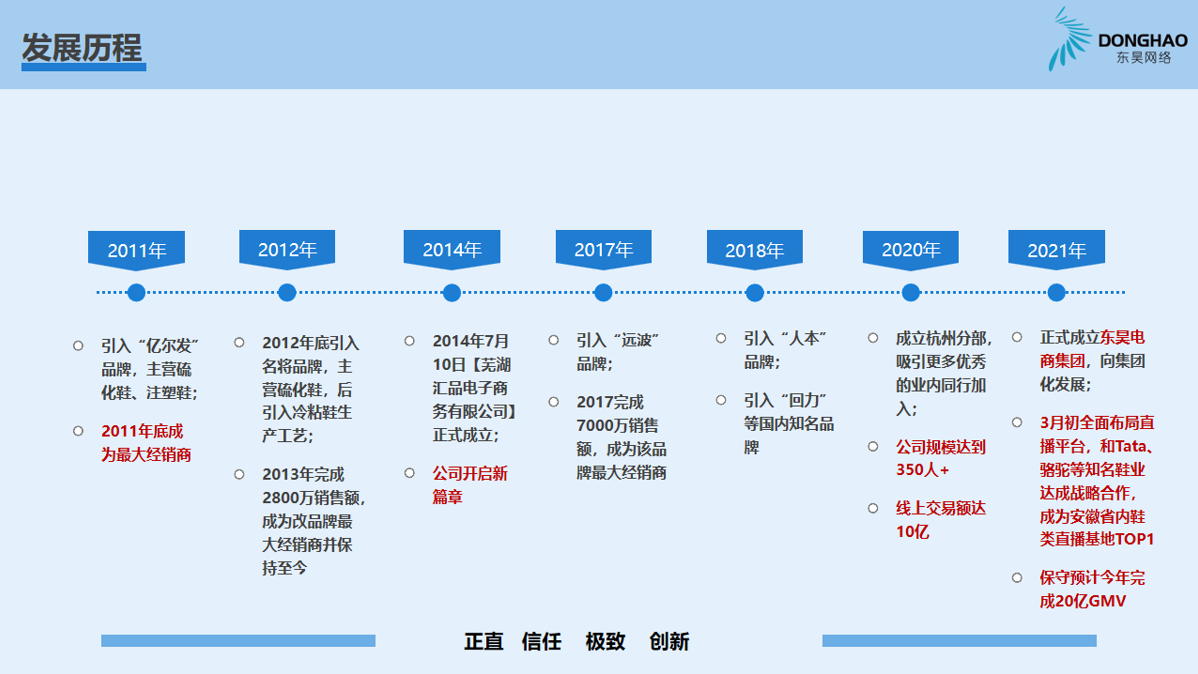 蕪湖東昊網(wǎng)絡(luò)科技有限公司,成立于 2014 年,是一家以互聯(lián)網(wǎng)平臺(tái)銷售為核心的電子商務(wù)運(yùn)營商,公司成立以來,始終專注于休閑運(yùn)動(dòng)鞋的互聯(lián)網(wǎng)銷售業(yè)務(wù),產(chǎn)品線覆蓋硫化鞋、注塑鞋、冷粘鞋,在互聯(lián)網(wǎng)二級類目單品牌排名前三,綜合成績排名TOP1;
